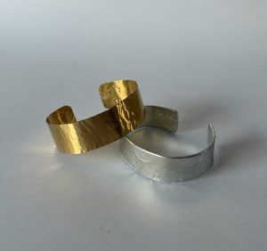 金工の三大技法である鋳金、鍛金、彫金を体験しながら、錫と真鍮でシンプルなバングルをつくります。